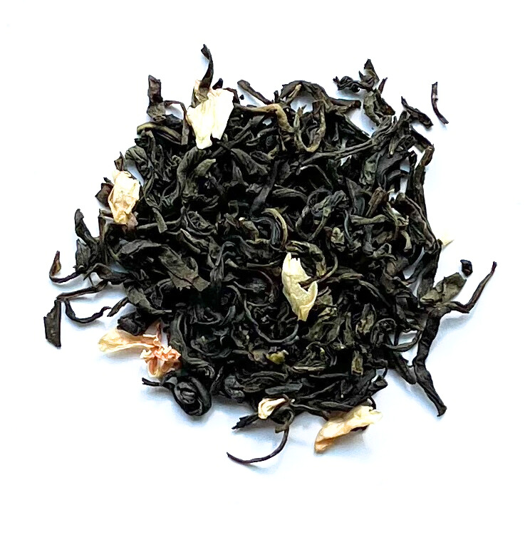 Bijzonder mooie gelijkmatig gerolde Chinese bladthee (Yun Huo). Gearomatiseerd met verse jasmijnbloemen. Na een bepaalde tijd worden de oude bloemen vervangen door verse bloemen en dit wordt tot 6 keer herhaald!