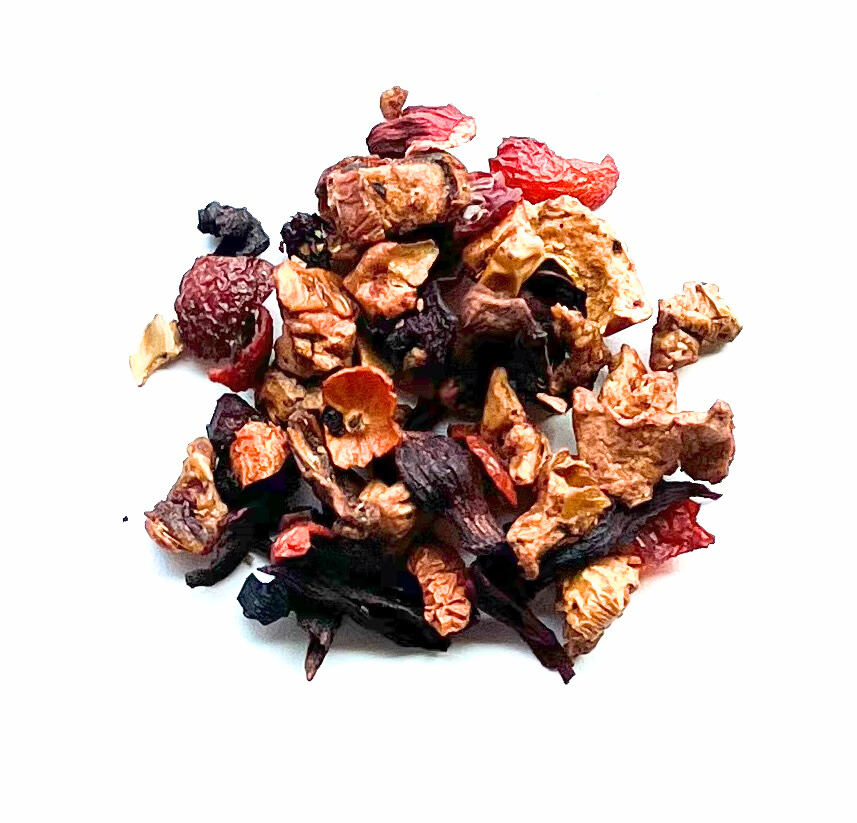Fijne mengeling van vruchten, met de ronde volle smaak van rijpe kersen. Zowel koud als warm heel verrassend! Met appel, hibiscus, rozenbottel, kersen en aroma.