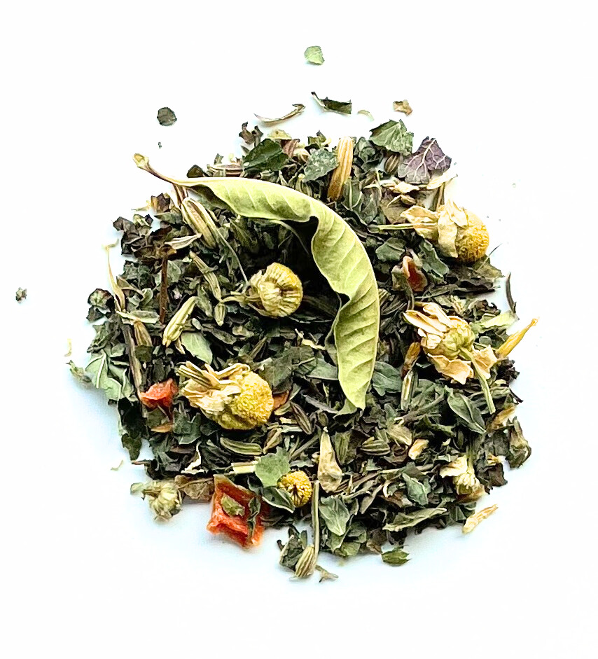 Ingrediënten: melisse, kamille, venkel, zouthout, anijs, karwij, wortel, pepermunt, hop, ijzerkruid en goudsbloem.