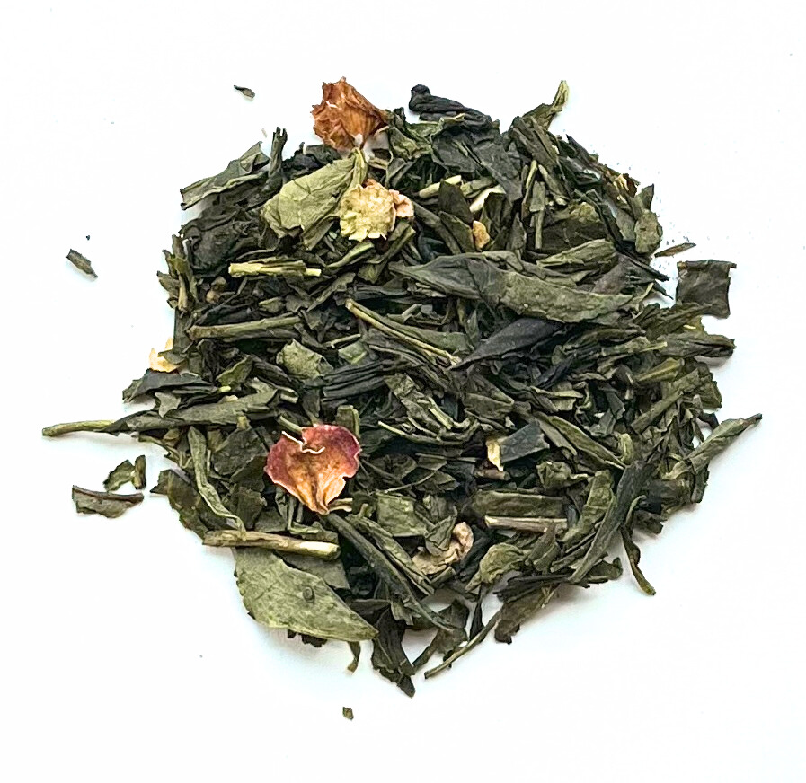 Groene Chinese Sencha thee die dankzij de rozenblaadjes en spirulia een heerlijke kersenbloesemsmaak heeft. Spirulina is een groene zoutwateralg, rijk aan vitaminen, eiwitten, omega-3-vetzuren, essentiële vetzuren en allerlei mineralen. Deze alg helpt bij het behouden van een gezonde bloedsuiker- en cholesterolspiegel, is algemeen ondersteunend voor de immuniteit en geeft energie.